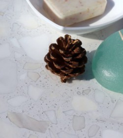 White base with white marble stone forming a simple uncomplicated design, yet diverse enough to blend in any design and add a touch of uniqueness to any surface.